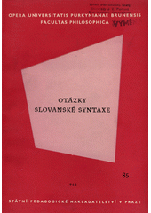 Otázky slovanské syntaxe. 1. vyd. Praha: Státní pedagogické nakladatelství, 1962. 465 s., [4] s. obr. příl. Opera Universitatis Purkynianae Brunensis. Facultas philosophica =, Spisy Univerzity J. E. Purkyně v Brně. Filosofická fakulta, 85.