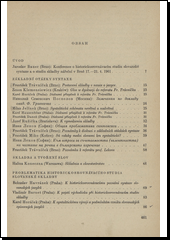 Referáty, koreferáty, sdělení a diskusní příspěvky slovanských syntaktiků z ČSSR, SSSR, Polska, Bulharska, NDR a Itálie jsou seskupeny v tyto tematické celky: základní otázky syntaxe, skladba a tvoření slov, problematika historickosrovnávacího studia slovanské skladby, problematika jednoduché věty a souvětí, vztah jazyka a myšlení a srovnávací studium vývoje slovanských jazyků, syntax mluveného jazyka a syntax nářečí, syntax v slovanském jazykovém atlase.
