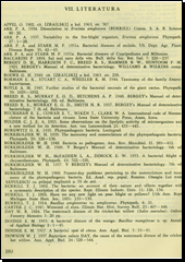 Autoři podrobili revizi nomenklaturu a taxonomii. Analyzovali morfologické, kultivační a fyziologické vlastnosti 156 kmenů získaných z různých sbírek. Vypracovali novou charakteristiku rodu a klíč k určování jeho jednotlivých druhů. Studované kmeny rozvrhli do tří skupin, jež v podstatě odpovídají třem druhům rodu Erwinia: Erwinia amylovora, Erwinia salicis a Erwinia carotovora.
