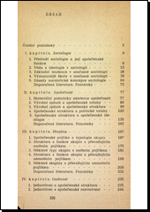 Úvodní poznámky nástinu osvětlují možnosti volby jeho koncepce. Následují kapitoly jak o výměru a společenské funkci sociologie, tak o zásadách její marxistické koncepce, o společnosti, jejích vztazích a struktuře, společenské ideologii, skupině neobvykle široce pojaté, osobnosti a její struktuře a závěrem o různých druzích empirických metod. M. Jodl v Encyklopedickém heslu kriticky hodnotí stavbu, pojetí a některé poznatky nástinu.