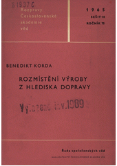 KORDA, Benedikt. Rozmístění výroby z hlediska dopravy. Praha: Nakladatelství Československé akademie věd, 1965. 94, [2] s. Rozpravy ČSAV. Roč. 75/1965, Řada společ. věd, Seš. 10.