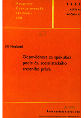 NEZKUSIL, Jiří. Odpovědnost za spekulaci podle čs. socialistického trestního práva. Praha: Nakladatelství Československé akademie věd, 1965. 76 s. Rozpravy ČSAV. Roč. 75/1965, Řada společenských věd, seš. 14.