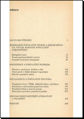 Autorka navazuje na svou populárně vědeckou práci Populace a společnost, vydanou r. 1959. Zpočátku objasňuje buržoazní populační teorie, zvláště Malthusovu. Následuje marxistický výklad nejobecnějších teoretických problémů reprodukce lidského druhu. Zahrnuje teorie o vztazích mezi přírodou a společností, biologické a sociální charakteristiky reprodukce, individuální i masové jevy a populační zákony. Posléze se zabývá rozborem metodologických principů aplikovaných na změny základního populačního vývoje v ČSSR po 2. světové válce.
