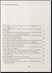 Sborník shrnující výsledky vědecké konference o pražské německé literatuře. Konference byla svolána z podnětu československých germanistů Ústavu jazyků a literatur ČSAV a ve spolupráci s filosofickou fakultou Karlovy university,Svazem československých spisovatelů a Památníkem národního písemnictví. Zúčastnila se jí řada odborníků ze socialistických i západních zemí. Byla věnována vrcholnému období pražské německé literatury od Rilkeho až po německou okupaci. Přínosem konference je stanovení pozic této literatury v rámci německého písemnictví a německé řeči vůbec, stanovení vztahu k literatuře někdejšího Rakousko-Uherska, Německa, vytčení vlivu českého materiálního a duchovního prostředí a zprostředkující úlohy jejích představitelů k českému národu.