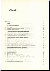 Srozumitelně koncipovaná příručka o správné funkci barevných televizorů vychází z výkladu černobílé televize. Podrobně popisuje způsob vytváření signálu barevné televize, skupinové schéma barevného televizoru a obrazovku. Vysvětluje podstatu přenosových soustav barevné televize, základy studiové techniky, přenos signálu ze studia na obrazovku a informuje o správné instalaci, nastavení a obsluze barevného televizního přijímače.