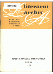 BÍLEK, Karol. Josef Ladislav Turnovský (1838- 1901): písemná pozůstalost. Praha: Literární archív Památníku národního písemnictví, 1975, 19 s. Edice inventářů / Literární archív Památníku národního písemnictví, č. 286.