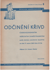 REŽNÝ, Hubert. Odčinění křivd československým veřejným zaměstnancům: podle dekretu presidenta republiky ze dne 17. srpna 1945, číslo 53 Sb. Brno: Zář, [1945]. 31 stran. Knižnice Činu, číslo 3.