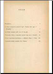 Pět přednášek o součas. vojen. problémech se stanoviska marx.-lenin. V prvé promlouvá Č. Hruška o úloze čsl. legií v Rusku a zjišťuje, že se legie vlivem vedení a důstojnictva staly nástrojem kontrarevoluce a interventů. V druhé podává plk. Koval ve zkratce slavnou historii sov. armády a shrnuje podle Stalina, čím se stává sov. armáda armádou nového typu. Ve třetí přednášce pojednává Dr. J. Hecht o vojenské vědě a vojenském umění. Vysvětluje základní pojmy a na histor. příkladech ověřuje správnost marx.-lenin. theorie o válkách a vojen. vědě. Podrobnější analysou ozřejmuje pak převahu sov. voj. vědy nad doktrinami států buržoasních. V předn. Učení marx.-lenin. o válkách objasňuje J. Kos, proč nelze na podkladě idealist. svět. názoru vyložit vznik a povahu válek a definuje podle Lenina válku jako pokračování třídní politiky buržoasie prostředky násilnými. V posl. přednášce přehlíží B. Věren historii čs. armády a konstatuje její buržoasní charakter až do zřízení čs. voj. jednotky v SSSR. Rekapituluje pak boj o její lidovost po r. 1945 proti úkladům buržoasie, boj, který skončil vítězně únorem 1948. V důsledku poúnorových událostí přiblížila se značně naše armáda svému sov. vzoru.