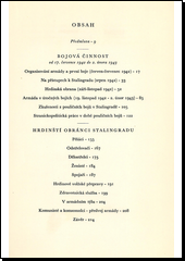 Historie rozhodující bitvy světové války zapisovaná autory-účastníky v průběhu bojů, které ukázaly světu úžasnou morální sílu a vojenské umění sovětských vojsk. Když v létě 1942 Němci vrhli dvě vybrané armády směrem na Stalingrad, byla 62. armáda teprve tvořící se záložní skupinou. A tato nová složka bez válečných zkušeností nejen že zasadila na přístupech ke Stalingradu nepříteli tak těžké rány, že nebyl s to ve stanovené lhůtě dospět k cíli, ale i splnila od září 1942 pod vedením chladnokrevného a houževnatého generál-poručíka Čujkova v úporných, namnoze pouličních bojích, úkol, daný Stalinovou strategií: nevydat Stalingrad, vyčerpat a vázat mocné síly nepřítele. V první části knihy jsou zachyceny (i situačními plánky) všechny fáze bojů 62. armády před Stalingradem a v něm až do 19. listopadu, kdy počala slavná protiofensiva, která skončila 2. února 1943) zničením největší armády, jaká kdy v historii válek byla obklíčena. Druhá část knihy je přehlídkou hrdinských činů příslušníků všech zbraní a služeb, z nichž zvláště členové komunist. strany a komsomolci strhovali ostatní k jedinečným výkonům.