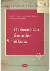 FILIPOVSKÝ, Jan. O obecné části trestního zákona. 1. vyd. Praha: Orbis, 1951. 150, [1] s. Nový právní řád, sv. 9.