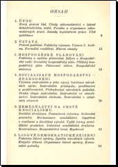 Stručný, ale velmi obsažný a přístupný výklad o všech důležitějších zákonech, vlád. nařízeních a někt. vyhláškách od r. 1945 až po naše dny. Při výkladu a hodnocení zákonů a vlád. nařízení bylo použito též důvodových zpráv k jednotl. normám. Obs. výklad o ústavě, hosp. plánování, o socializaci hospodářství (znárodnění), o socialist. cestě našeho zemědělství, o lid. demokrat. zřízení u nás, prac. právu, o stavbách a techn. zařízeních, školství a osvětě, o reformě daňového systému a kodifikaci práva.
