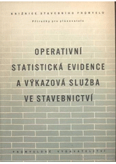 Kniha rozebírá hlav. zásady operativní statistiky a evidence ve stavebnictví. Pojednává o úkolech evidence a statistiky při zajišťování objektivních údajů jak pro potřebu sestavení národohosp. plánů, tak i pro kontrolu jejich plnění. Jsou v ní též popsány zákl. statist. dokumenty, jichž se používá na stavbách v SSSR. Obs.: Předměty statist. evidence a výkazové služby ve stavebnictví; Soupisy; Základní dokumentace statist. evidence ve stavebnictví; Operativní statist. výkazy; Souhrnný výkaz o výrobě vedlejších provozoven staveb; Výkaz vlastních nákladů ve stavebnictví.