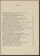Krátké pohádky, založené většinou na dialogu a doprovázené četnými barevnými ilustracemi a jednobarev. obr. v záhlaví každé z nich jsou dětem ukázkou pohádkového bohatství různých národů. Tak se tu střídají pohádky české s ruskými, bulharskými, pohádka bretoňská s pohádkou anglickou, švédskou, černošskou a burjatskou; opominuty nejsou ani bajky, kde pořadatelka knihy vybrala alespoň Lafontainovu Domýšlivou žábu a Říhovu Učenou mouchu.