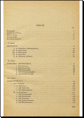 Po úvodních kapitolách pojednávajících o třídění živočišstva, o dělení druhu, o terminologii a o živočišné soustavě následuje hlavní část, probírající jednotlivé kmeny živočišné soustavy: I. Protozoa, II. Porifera (Spongiaria), III. Coelenterata, IV. Vermes, V. Mollusca. Protože kniha byla napsána před sjezdem čs. zoologů v Opavě 1951, neodpovídá rozdělení kmenů jednotnému systému živočišných skupin, přijatému sjezdem. Přehled nového zoologického systému je uveden v závěru.