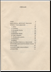 Autor pojednává o geologické minulosti Krkonoš a kromě geologické stavby této oblasti probírá její nerosty, zeměpisné členění, vodní bohatství, povětrnostní poměry, rostlinstvo i zvířenu. V posledních pěti kapitolách věnuje pozornost způsobům, jak člověk poznával Krkonoše, otázce Krkonoš jako hospodářského celku, pověstem o Krakonošovi a významu prohlášení určitých částí Krkonoš za přírodní reservaci.