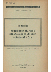 ŘEZNÍČEK, Jiří. Organisace státního národohospodářského plánování v ČSR. 1. vydání. Praha: Rudé právo, vydavatelství Ústředního výboru KSČ, 1954. 41 stran. Vysoká stranická škola při ÚV KSČ. Katedra ekonomiky ČSR.