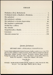 JELÍNKOVÁ, Zdenka. Dětské hry a říkadla z Horňácka. Ilustrace Věra HOLUBOVÁ. 1. vyd. Praha: SNKLHU, 1954. 183 s., [4] s. obr. příl.