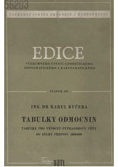 KUČERA, Karel. Tabulky odmocnin: Tabulky pro výpočty podle Pythagorovy věty do délky přepony 5000,000. 1. vyd. Praha: SNTL, 1958. 16, 128, [1] s. Řada theoretické literatury, Sv. 3.