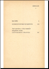 FRANK, Leonhard. Raubíři: Ochsenfurtské kvarteto. Vydání první. Praha: Státní nakladatelství krásné literatury, hudby a umění, 1959. 375 stran. Soudobá světová próza, sv. 83.