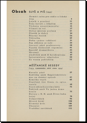 Svazek obsahuje vybrané povídky z let 1942-1956 s cyklem "Měšťanské besedy", který byl v roce 1954 poctěn státní cenou. Všem je společné bojové užití satiry, humoru a ironie k odhalování a nelítostnému zesměšnění zpátečnických a sobeckých sil v člověku, měšťáku především, i celé společnosti.