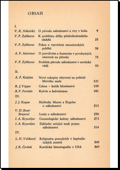 Vybrané stati sovětských odborníků o náboženskosti předvěkých lidí, objevech biblických rukopisů na pobřeží Mrtvého moře, starověkém odpůrci křesťanství Celsovi, o Kalvínovi a kalvinismu, gnoseologických a sociálních kořenech náboženství, vědeckém přínosu Marxe, Engelse a Lenina k vědeckému ateismu a religiozitě v některých západních kapitalistických zemích.
