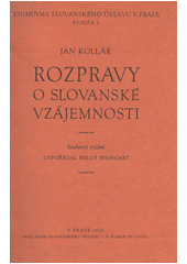 KOLLÁR, Ján a WEINGART, Miloš, ed. Rozpravy o slovanské vzájemnosti. Souborné vyd. V Praze: Slovanský ústav :, Orbis [distributor], 1929. liii, 242 s., [iv] s. obr. příl. Knihovna Slovanského ústavu v Praze, sv. 1.