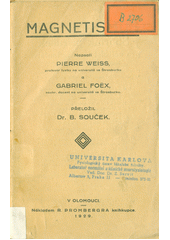 WEISS, Pierre. Magnetismus. Překlad Souček B.. Olomouc: R. Promberger, 1928. 173 stran. Sborník příruček pro učitelstvo a studentstvo.