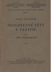 TRÁVNÍČEK, František. Neslovesné věty v češtině. Brno: Filosofická fakulta s podporou Ministerstva školství a národní osvěty, 1930. 255 stran. Spisy filosofické fakulty Masarykovy university v Brně =, Opera Facultatis Philosophicae Universitatis Masarykianae Brunensis, číslo 31.
