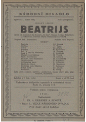 LILIEN, Ignace. Beatrijs: Opera o třech jednáních podle dramatu "Ik Dien" ("Sloužím") od Hermana Teierlincka. V Praze: Fr. A. Urbánek a synové, 1931. 31 - [I] s. Urbánkova bibliotéka operních a operetních textů. Řada II, Sv. 114.