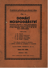 TARABOVÁ, Marie. Domácí hospodářství: Praktická příručka k domácímu hospodářství, zpracovaná dle osnov pro školy pětitřídní [s 8mi školními roky] a pro I. a IV. tř. škol měšťanských. Holešov: Tuček, 1931. 63 - [I] s. Příručky praktické pro školu i dům, Čís. 1.