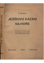 ŽILKA, František. Ježíšovo kázání na hoře: nový překlad s úvodem a výkladem pro přítomnou dobu : pátá část, díl druhý Začátků a základů křesťanského náboženství. V Praze: Kalich, 1931. 189 stran.