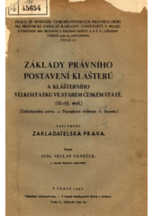 Základy právního postavení klášterů a klášterního velkostatku ve starém českém státě: (12.-15. stol.) : [zakladatelská práva : pozemková vrchnost : imunita]