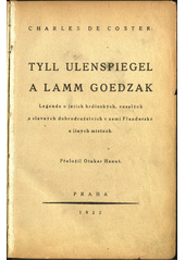 DE COSTER, Charles Théodore Henri. Tyll Ulenspiegel a Lamm Goedzak: legenda o jejich hrdinských, veselých a slavných dobrodružstvích v zemi Flanderské a jiných místech. Praha: A. Svěcený, 1922. 513 s., [16] l. obr. příl. Románové knihovny, sv. 34.