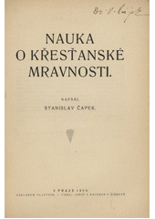 ČAPEK, Stanislav. Nauka o křesťanské mravnosti. V Praze: nákladem vlastním, 1925. 50 stran.