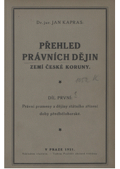 KAPRAS, Jan. Přehled právních dějin zemí české koruny. Praha: Jan Kapras, 1921. 152 s.