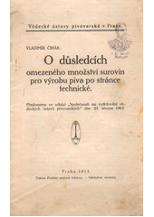 Autor: Čihák, Vladimír, Vědecké ústavy pivovarské, Výzkumný ústav pivovarský a sladařský a O důsledcích omezeného množství surovin pro výrobu piva po stránce technické (1915 : Praha, Česko)