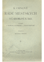 GROSS, Hynek. K obnově řádů městských v Č. Krumlově r. 1443. Praha: Královská česká společnost nauk, 1906. 14 s.
