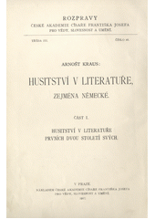 KRAUS, Arnošt Vilém. Husitství v literatuře, zejména německé. V Praze :, Lipsiae: Nákladem České akademie císaře Františka Josefa pro vědy, slovesnost a umění :, V komisi Bursík & Kohout ;, O. Harrassowitz, 1917, 271 s. Rozpravy České akademie císa