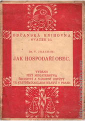 JOACHIM, Václav. Jak hospodaří obec. V Praze: Státní nakladatelství, 1922. 32 s. Občanská knihovna, sv. 23.