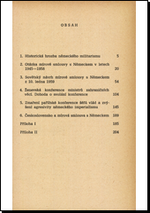 Nejvýše aktuální přehled historických podmínek německého militarismu a revanšismu, rozebírající a komentující otázky mírové smlouvy s Německem v letech 1945-1958, sovětský návrh z 10.1.1959, ženevskou konferenci ministrůzahraničních věcí i zmařenou konferenci šéfů vlád v Paříži. Z těchto výmluvných faktů vyplývá nutnost konečného řešení, které je v zájmu všech mírumilovných lidí.