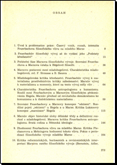 Spis vedoucího katedry dialektického a historického materialismu na brněnské universitě zkoumá otázku, kdy a jak působil Feuerbach na mladého Marxe. Jde o důležitou otázku, kterou revizionisté a dogmatici překrucovali ba stavěli Marxe proti Marxovi. Autor vždy usiloval, aby politické a vědecké ideje marxismu byly šířeny v ryzí podobě. A tentokráte se podjal úkolu nad jiné odpovědného, objasnit sám historický zrod marxismu. V rozboru podmínek a okolností za nichž došlo k přerodu K. Marxe v marxistického filosofa vrcholí jeho práce. Předčasná smrt zabránila autoru, aby provedl poslední korektury.