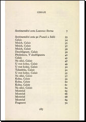 STERNE, Laurence. Sentimentální cesta po Francii a Itálii. Překlad František MAREK. 1. vyd. Praha: Státní nakladatelství krásné literatury, hudby a umění, 1958. 188 s. Světová četba, sv. 188.