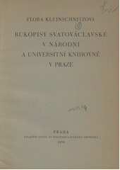 KLEINSCHNITZOVÁ, Flora. Rukopisy svatováclavské v národní a universitní knihovně v Praze. Praha: Národní výbor pro oslavu svatováclavského tisíciletí, 1939. 39 s.