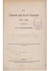 SCHLESINGER, Ludwig, ed. Die Chronik der Stadt Elbogen (1471-1504). Prag :, Leipzig: Verein für Geschichte der Deutschen in Böhmen :, In Commission bei F. Tempsky ;, F.A. Brockhaus, 1879. xvi, 202 s. Deutsche Chroniken aus Bœhmen, Band I..