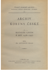 HAAS, Antonín. Archiv Koruny české. V Praze: Zemský národní výbor, 1947. Český zemský archiv, I.