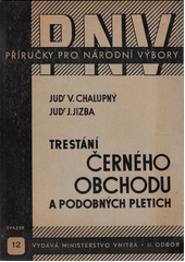 CHALUPNÝ, Václav a Jiří JIZBA. Trestání černého obchodu a podobných pletich. V Praze: Ministerstvo vnitra, II. odbor :, V. Linhart [distributor], 1947, 84 s. Příručky pro národní výbory, Sv. 12.