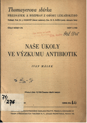 MÁLEK, Ivan. Naše úkoly ve výzkumu antibiotik: (předneseno 17. prosince 1949 na 5. pracovním sjezdu Čsl. mikrobiologů v Ostravě). [Praha: Zdravotnické nakladatelství, 1950]. 18 s. Thomayerova sbírka přednášek a rozprav z oboru lékařského, Čís. 276, seš. 3/1950.
