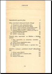 Informativní politická brožura líčí vznik a historii poválečných paktů NATO, SEATO a Bagdádského paktu, vysvětluje jejich strukturu, politický a vojenský význam i agresívní cíle. Autoři: M. Had, A. Ort, J. Pátek, F. Vychodil.