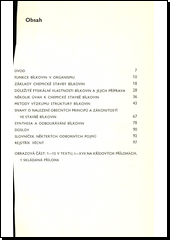 Populární souhrn současných znalostí o bílkovinách i o cílech výzkumu, jejich významu v organismu, vlastnostech fyzikálních, chemických i biologických a o zákonitostech struktury, syntézy a odbourávání.
