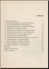 Stručné portréty 12 čelných skladatelů (Bacha, Händela, Glucka, Haydna, Mozarta, Beethovena, Webera, Schumanna, Mendelssohna, Wagnera, Brahmse, Strausse), jejichž dílo zaujímá význačné místo v dějináchsvětovéhudby.Závěrečnákapitola je věnována vývoji revoluční a politické písně.